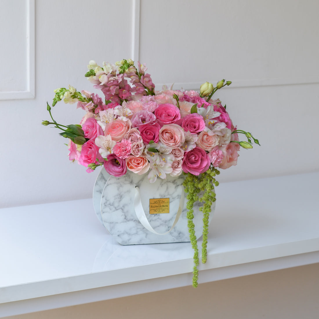 Nuestra caja “Enchante Marble” disponible en una sofisticada caja de mármol en acrílico con flores...