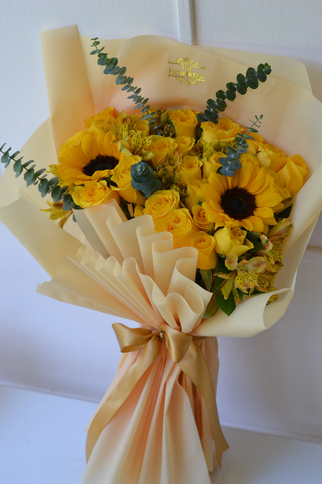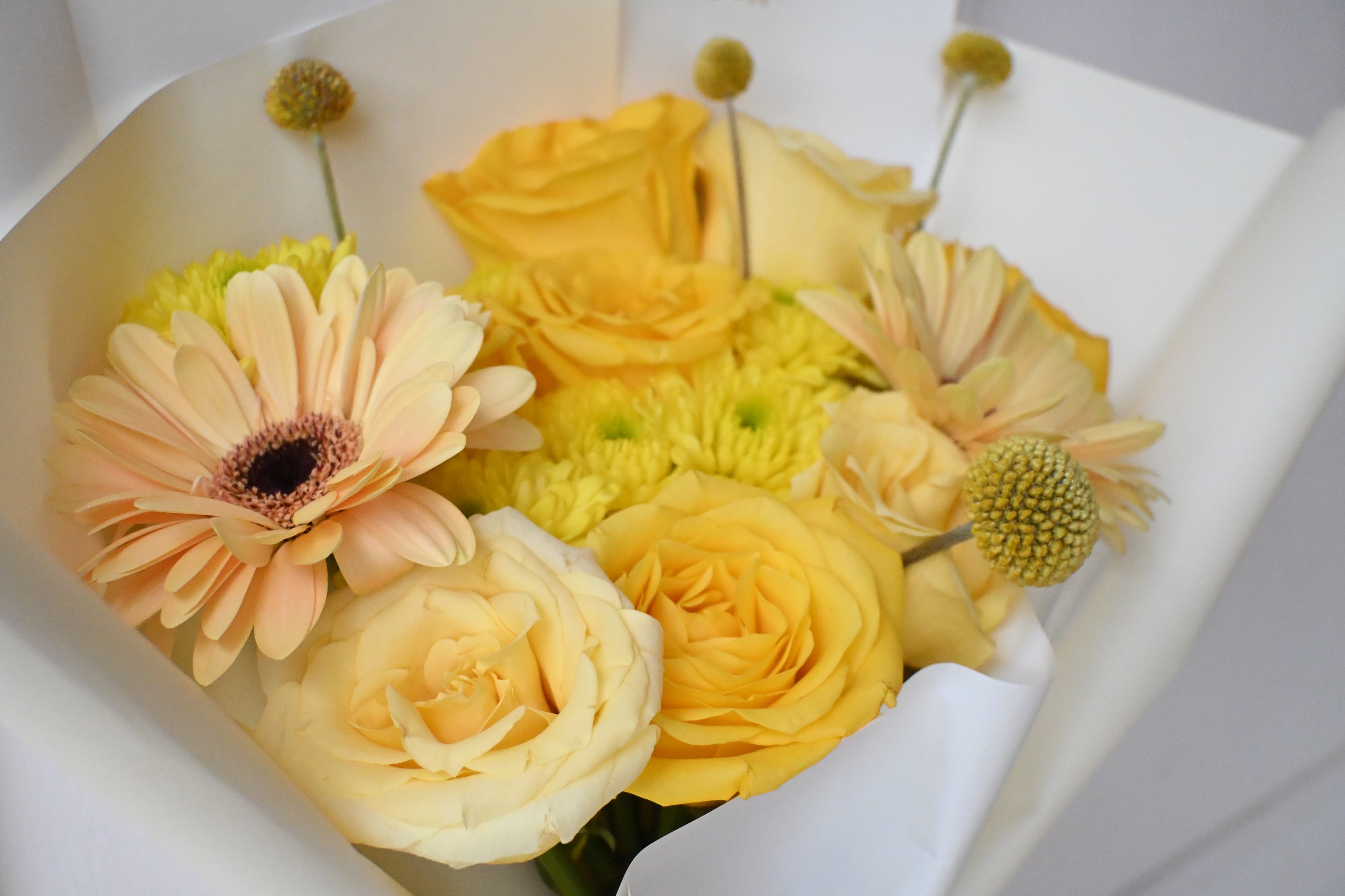 Combinando luz y alegría en un ramo con rosas, claveles y mini clavel listo paraa...