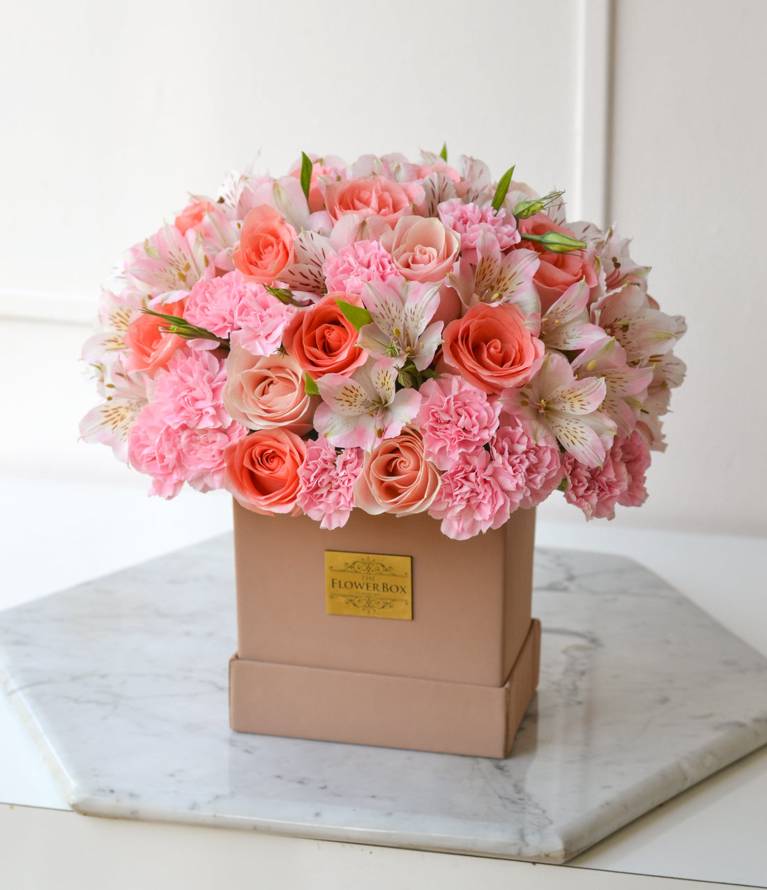 Nuestro nuevo arreglo “Mom” está diseñado en una caja elegante beige con rosas Detalles Flores...