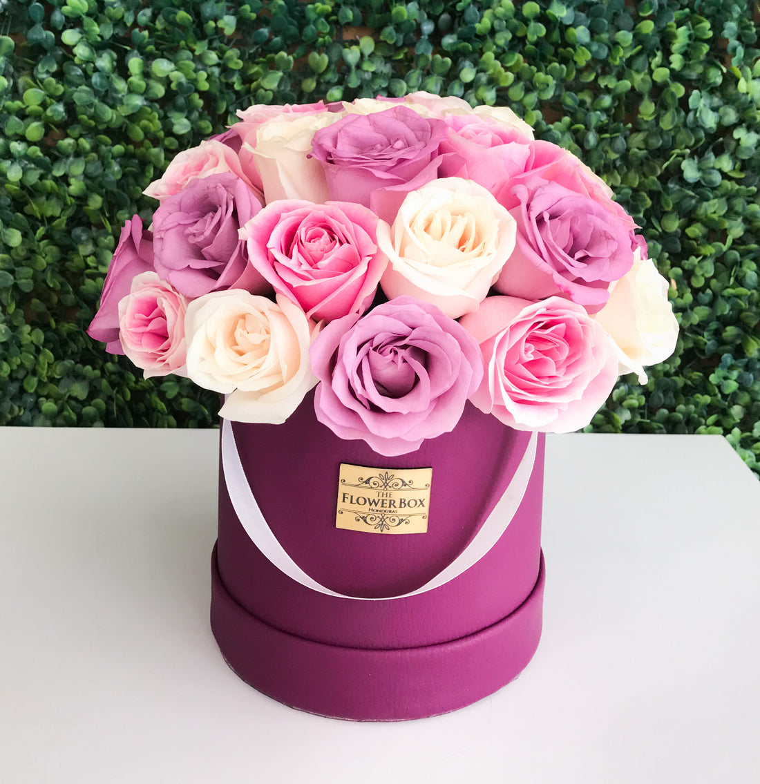 Nuestra caja diseñado con rosas frescas en nuestra caja clásica cilíndrica. Contiene 46-50 rosas. Detalles...