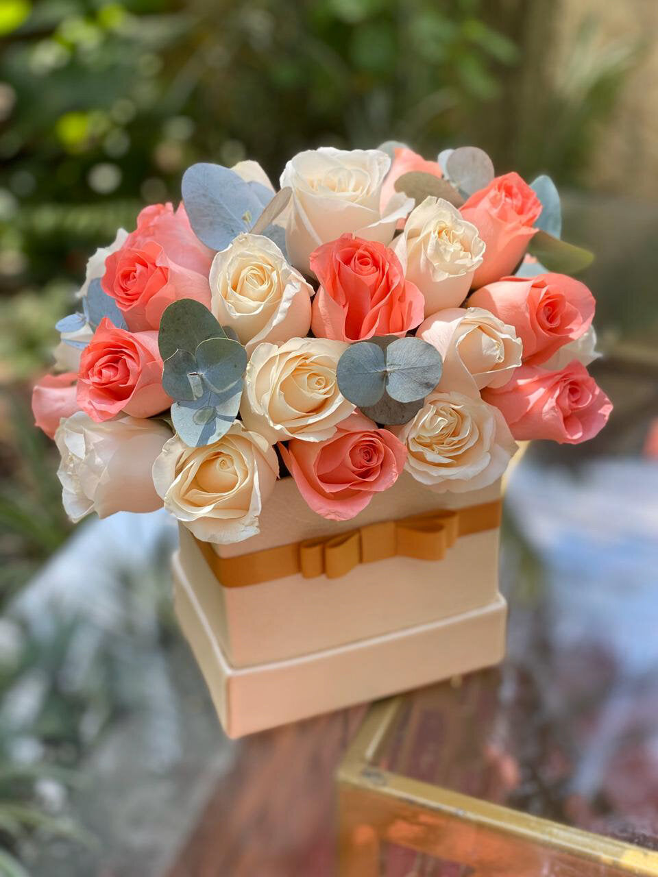 Nuestro arreglo “Peach Mint” disponible en una sofisticada caja de cuero peach. Detalles Flores utilizadas:...