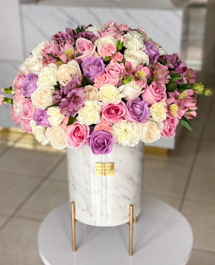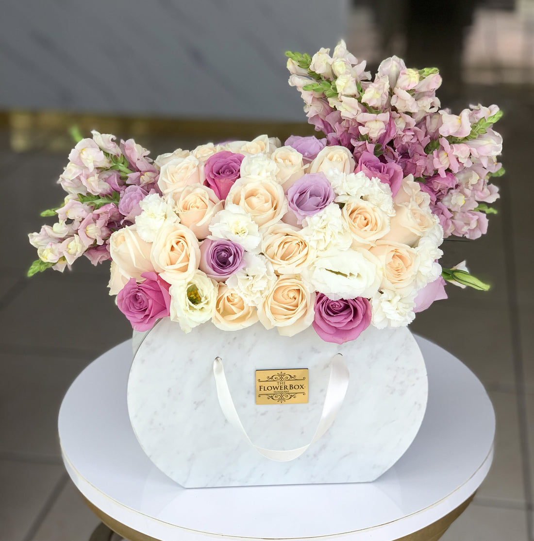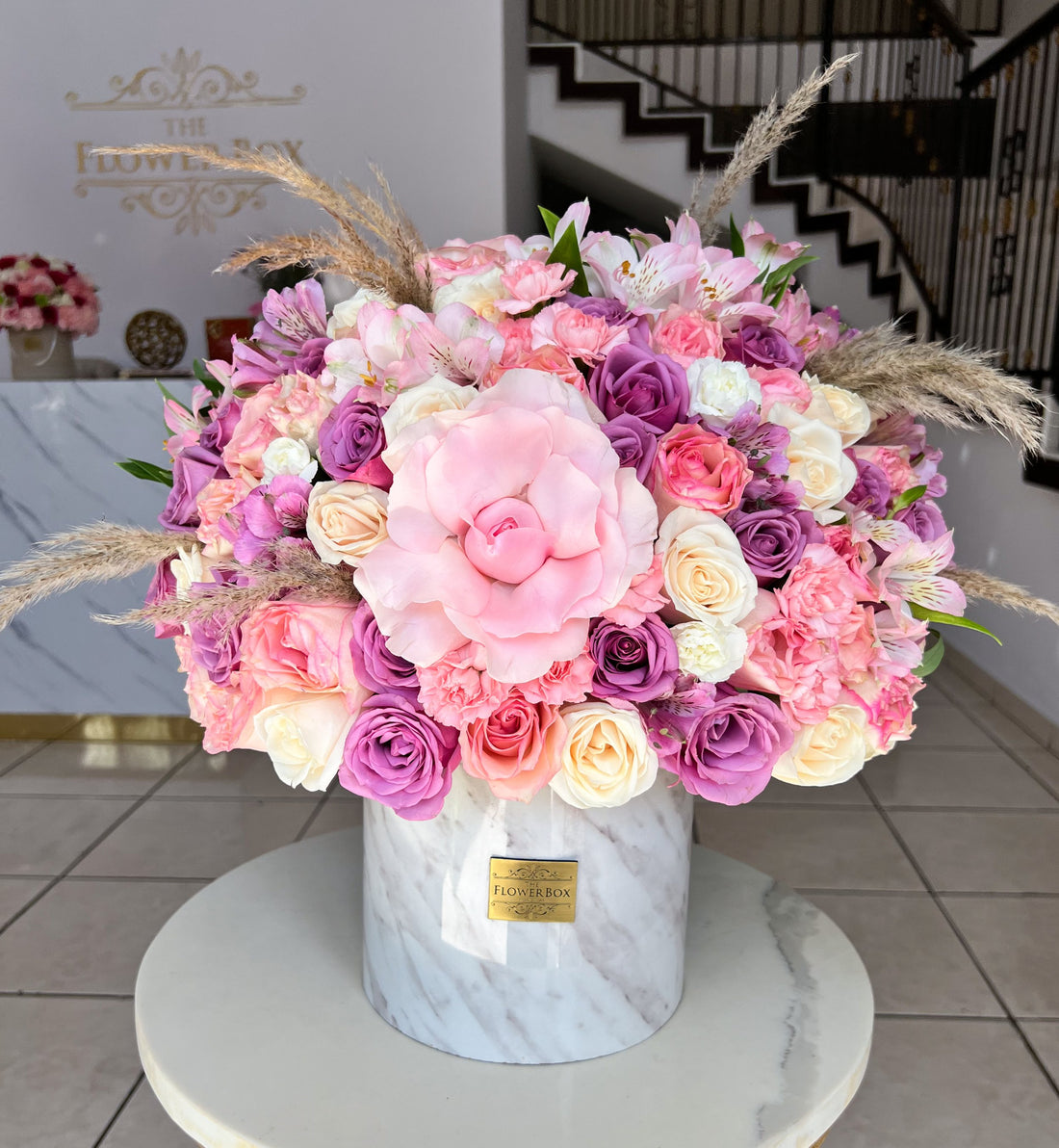 Nuestro arreglo “Sweet Lux Marble” viene disponible en una sofisticada caja de mármol blanco y...