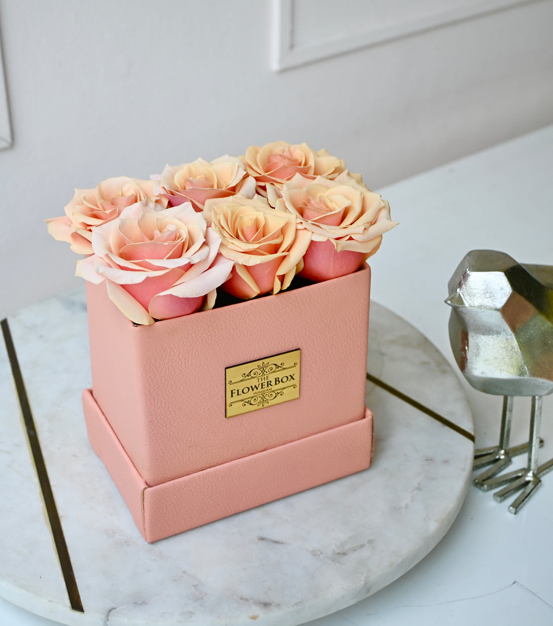 Un toque salmón y dulce para mamá. Combinación de 6 rosas en su box, ideal...