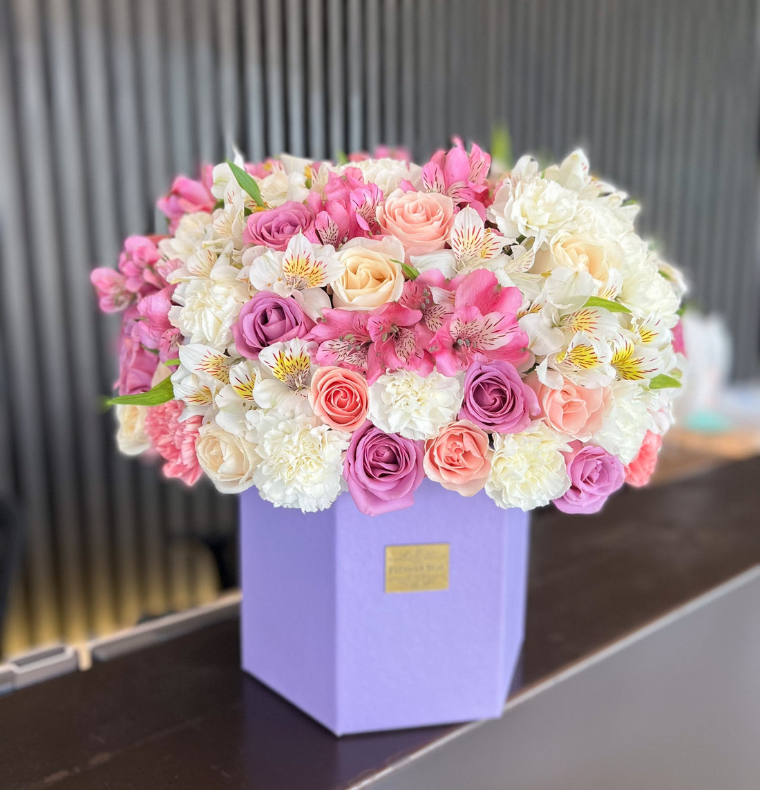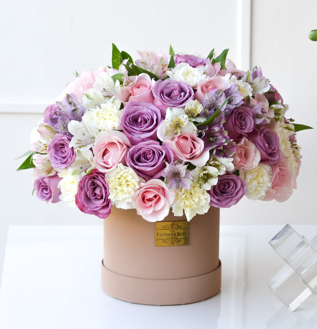 Nuestros caja “Lunar Box” es perfecta para el Día de San Valentín, nuestras rosas moradas...