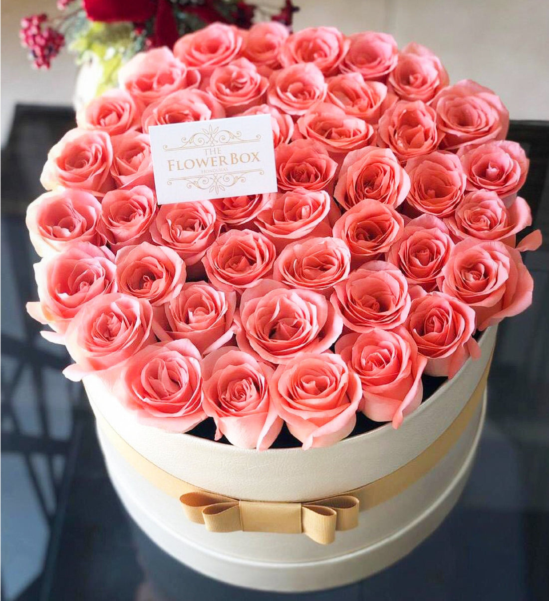 Nuestra caja diseñado con rosas frescas en nuestra caja clásica cilíndrica. Contiene 46-50 rosas. Detalles...