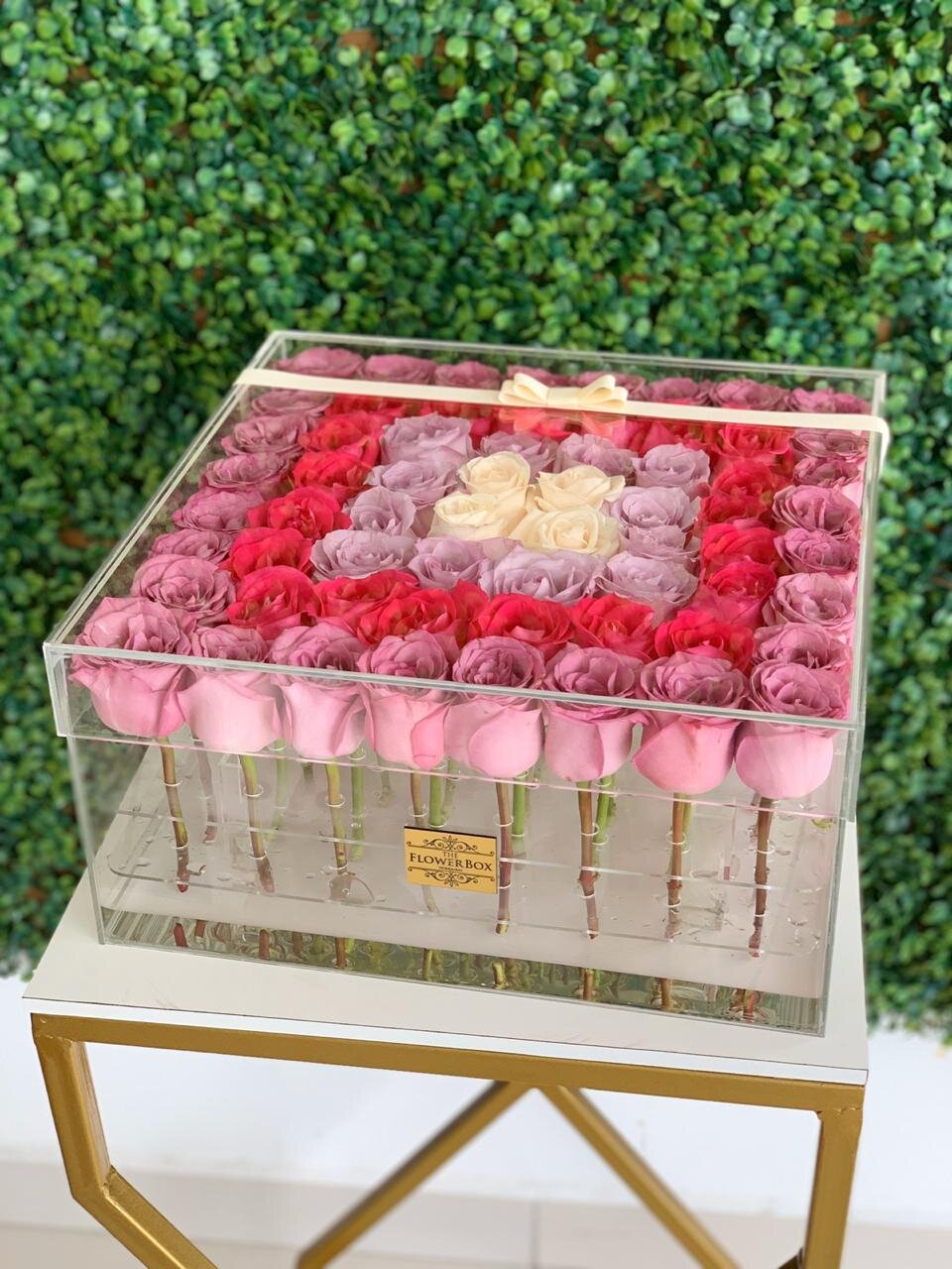 Nuestro arreglo “Pink Eden” disponible en una sofisticada caja de mármol blanco y base dorada....