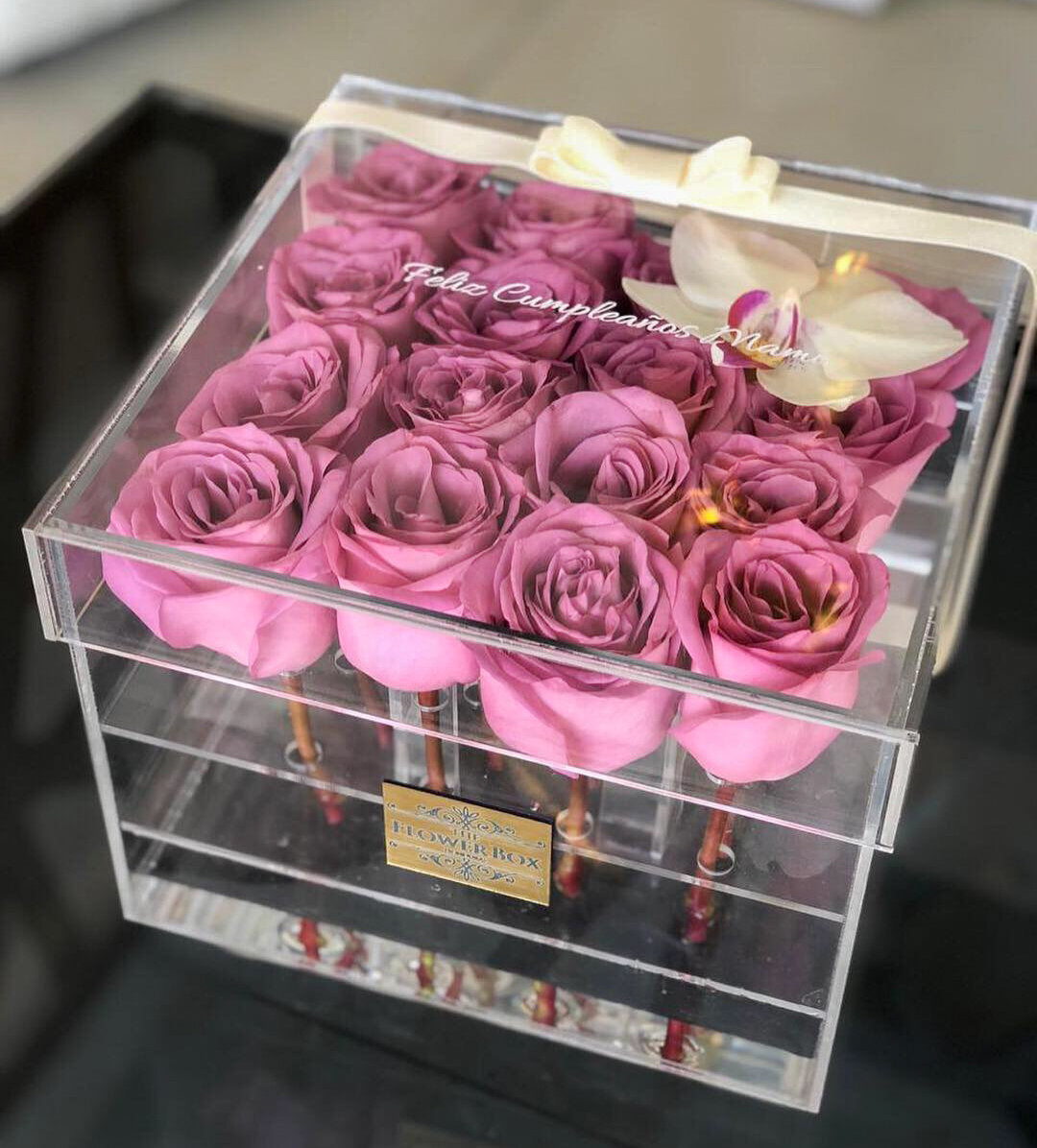 Nuestra caja “Enchante Marble” disponible en una sofisticada caja de mármol en acrílico con flores...