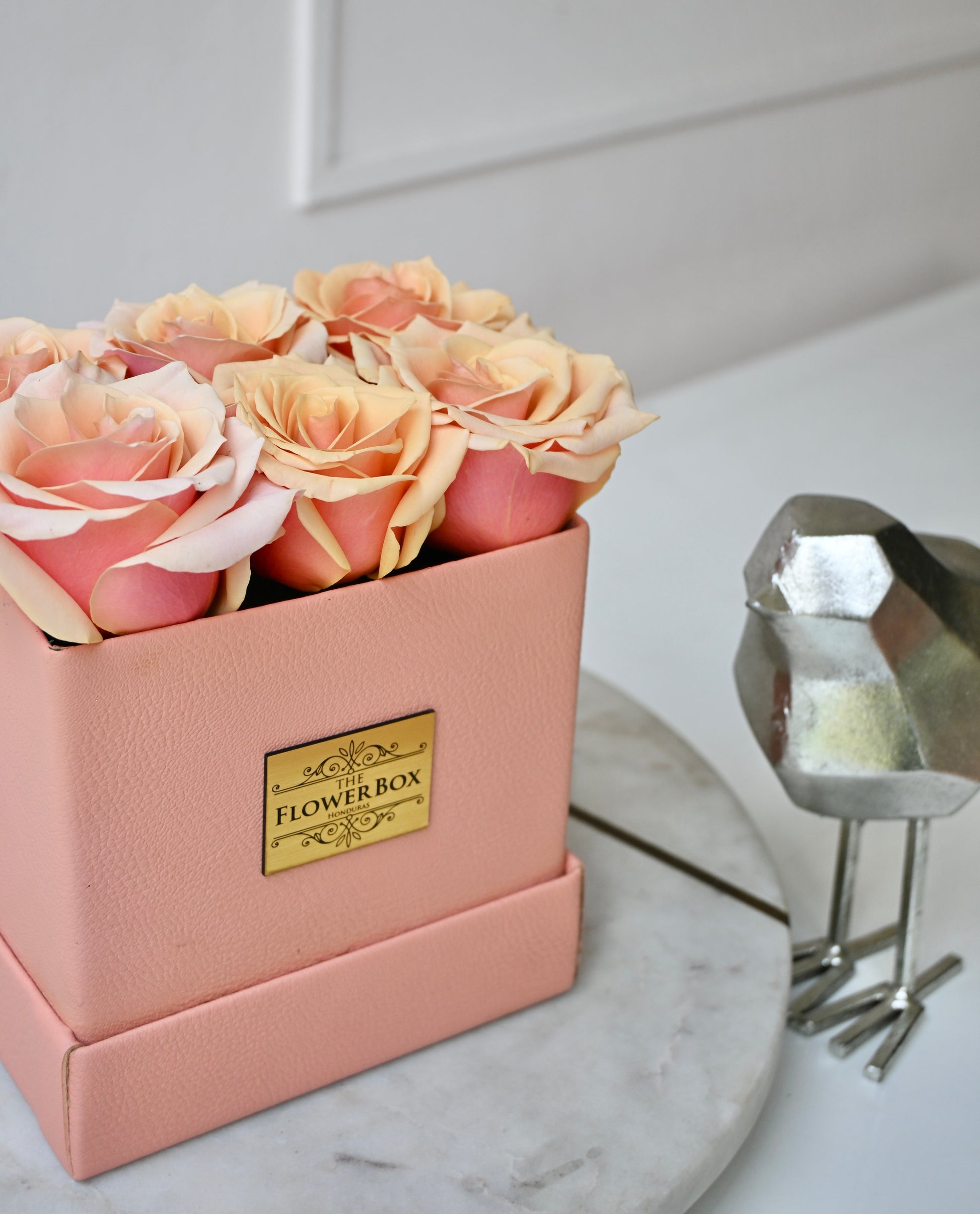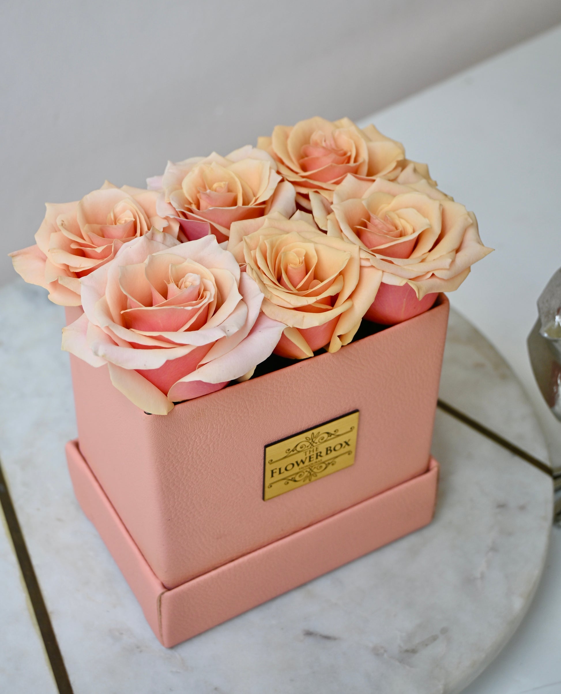 Un toque salmón y dulce para mamá. Combinación de 6 rosas en su box, ideal para no dejar de celebrarla a ella🧡