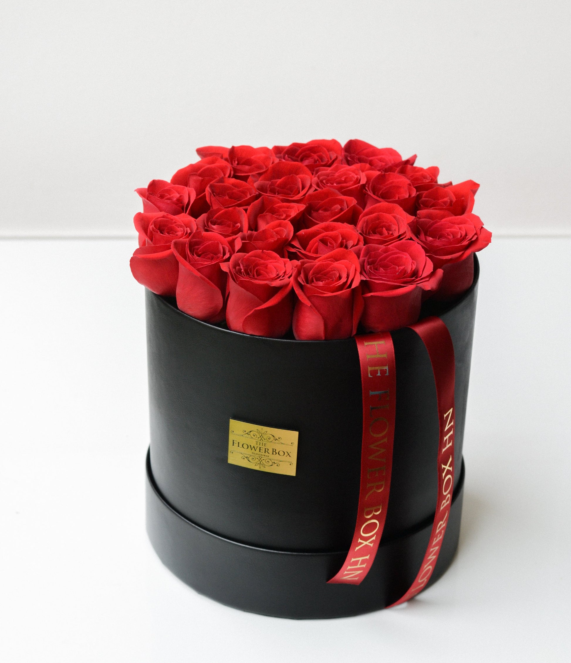 Nuestra caja diseñado con rosas frescas en nuestra caja clásica cilíndrica. Contiene de 20-24 rosas.