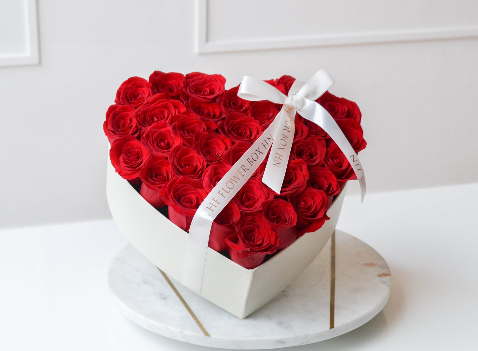 Nuestra nueva caja de "With Love" contiene rosas frescas. Disponible en una sofisticada caja blanca en forma de corazón con nuestra cinta de The Flower Box. Perfecta para San Valentín ❤️
