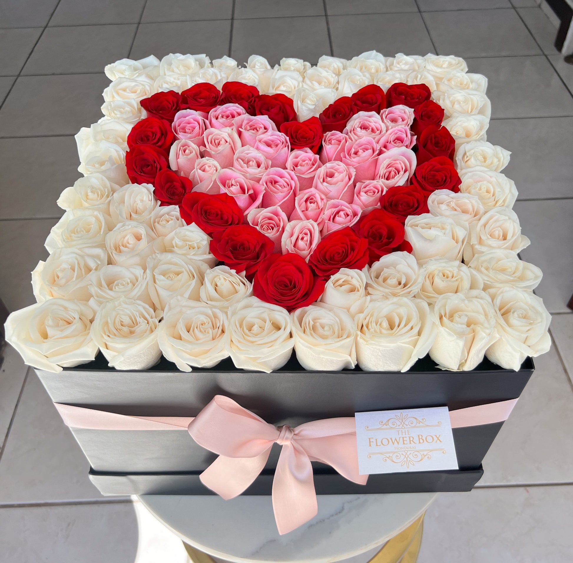 Te presentamos nuestra nueva caja perfecta para este día de las madres. Nuestra caja incluye cinta rosada con una variedad de rosas.
