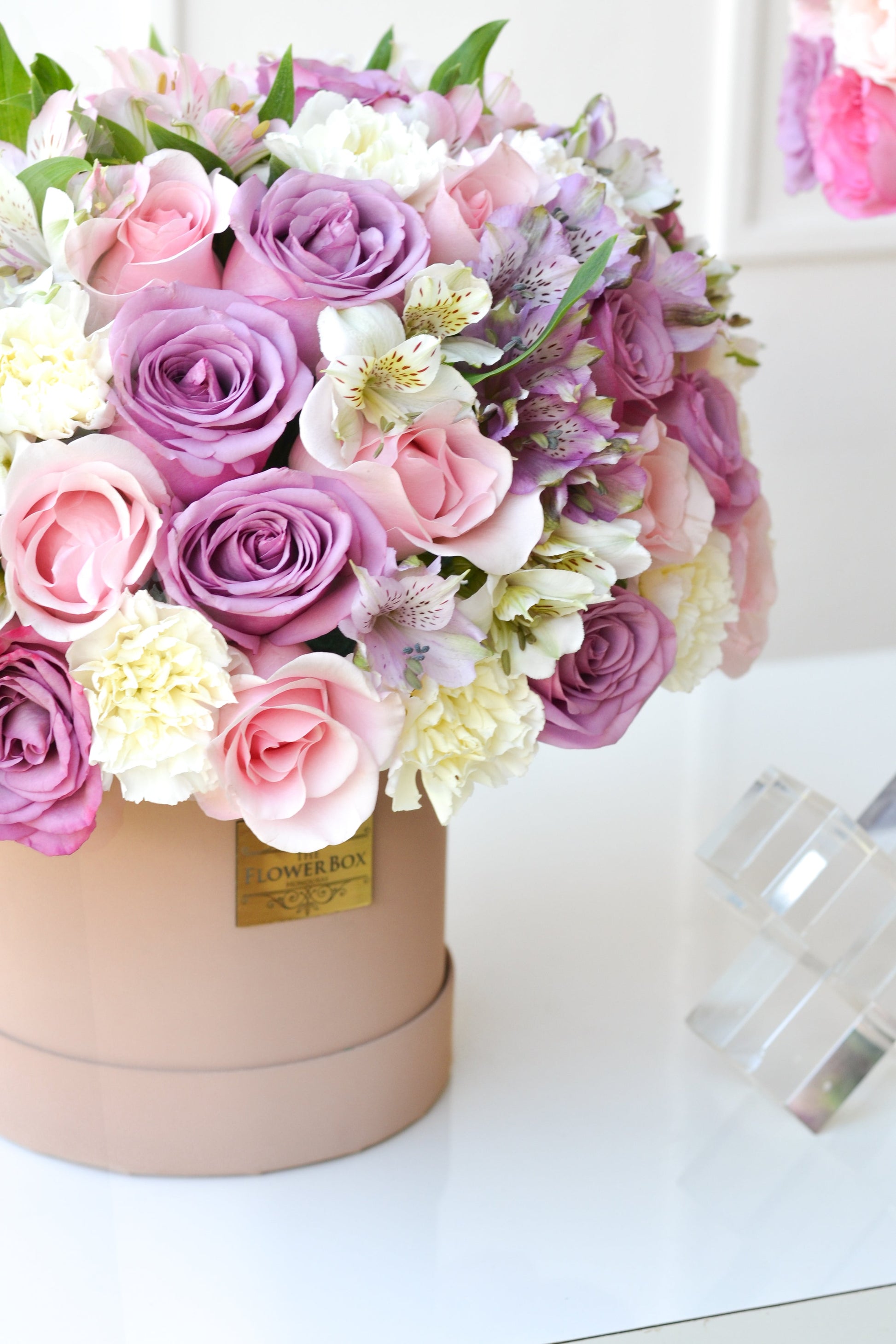 Nuestra caja “Not Your Typical Nude Box” disponible en una sofisticada caja de cuero cafe en combinación con flores primaverales y tonos pasteles.