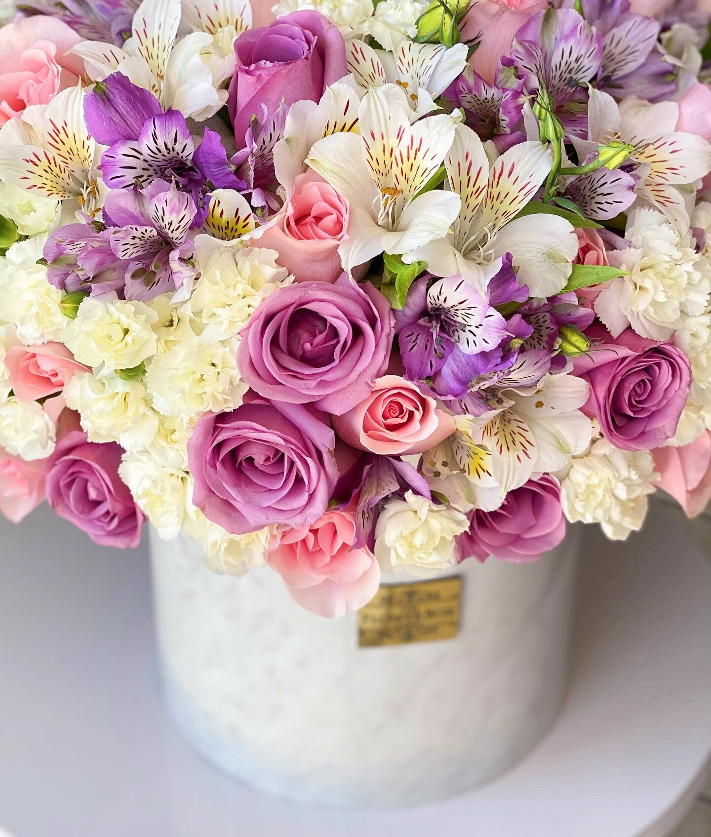 El arreglo perfecto para cualquier ocasión. Nuestro “Queen’s Garden” está diseñado en una caja elegante blanca con flores primaverales.