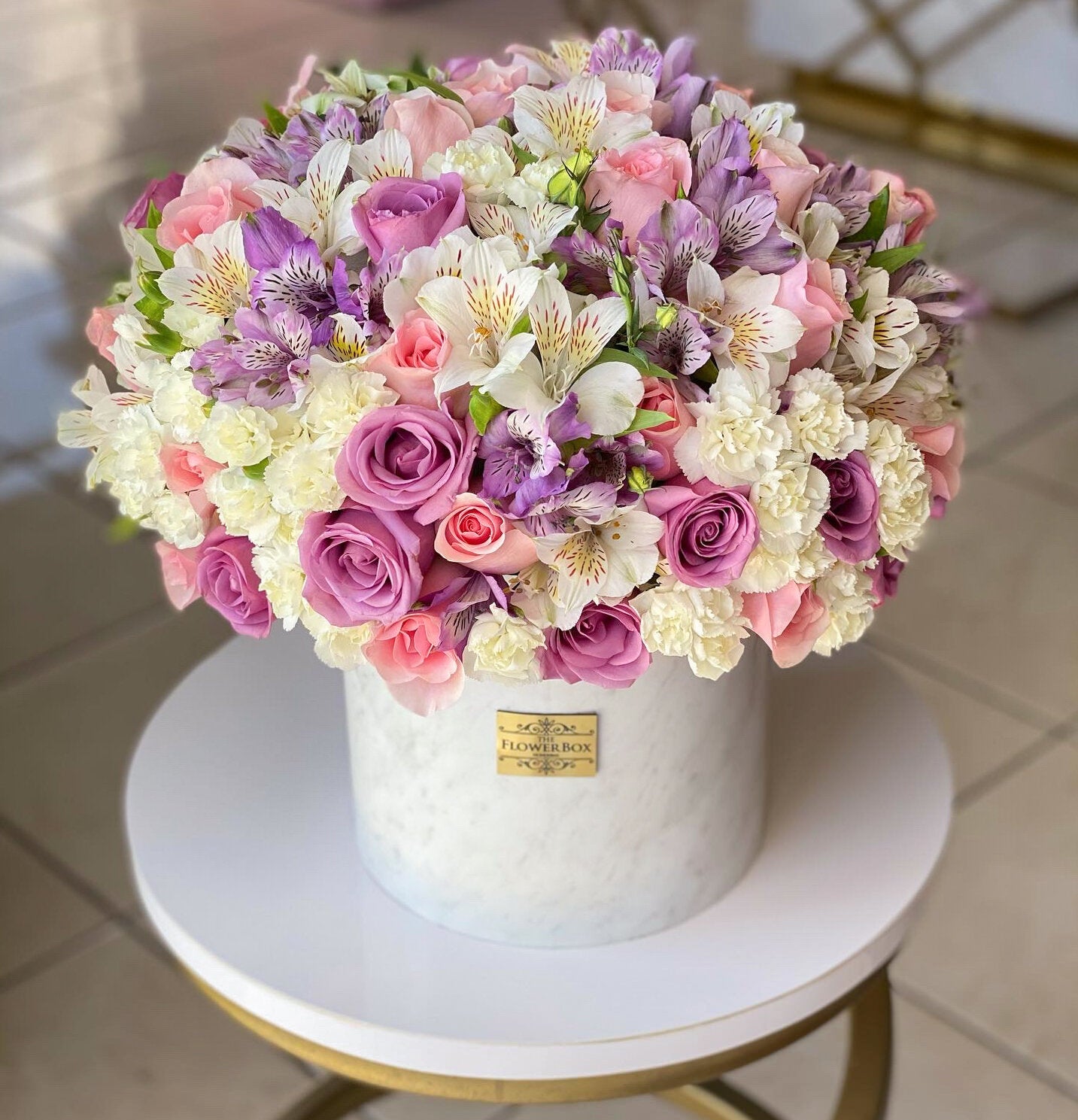 El arreglo perfecto para cualquier ocasión. Nuestro “Queen’s Garden” está diseñado en una caja elegante blanca con flores primaverales.