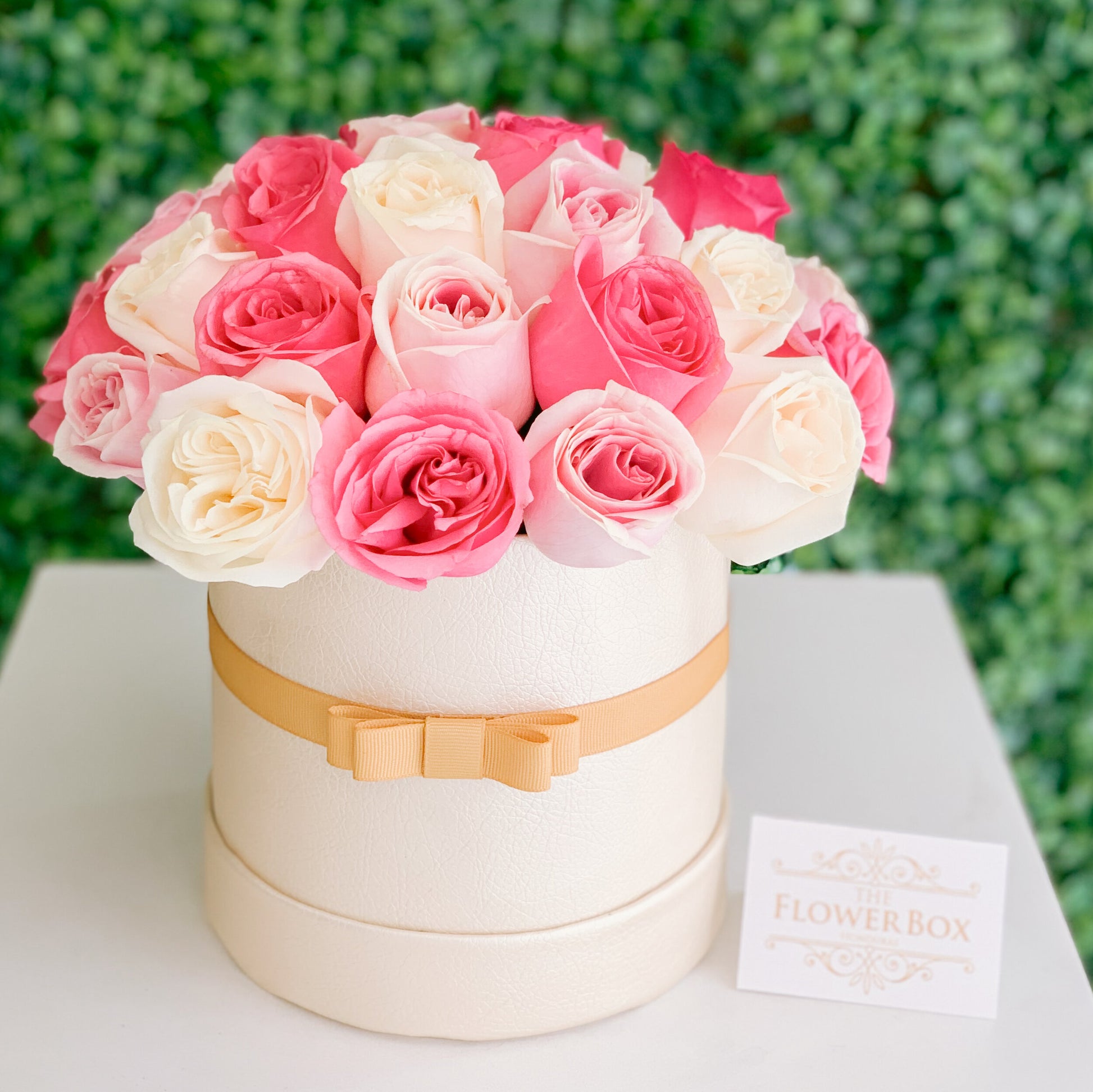 Disponible en una elegante caja con el color de rosas que prefieras.