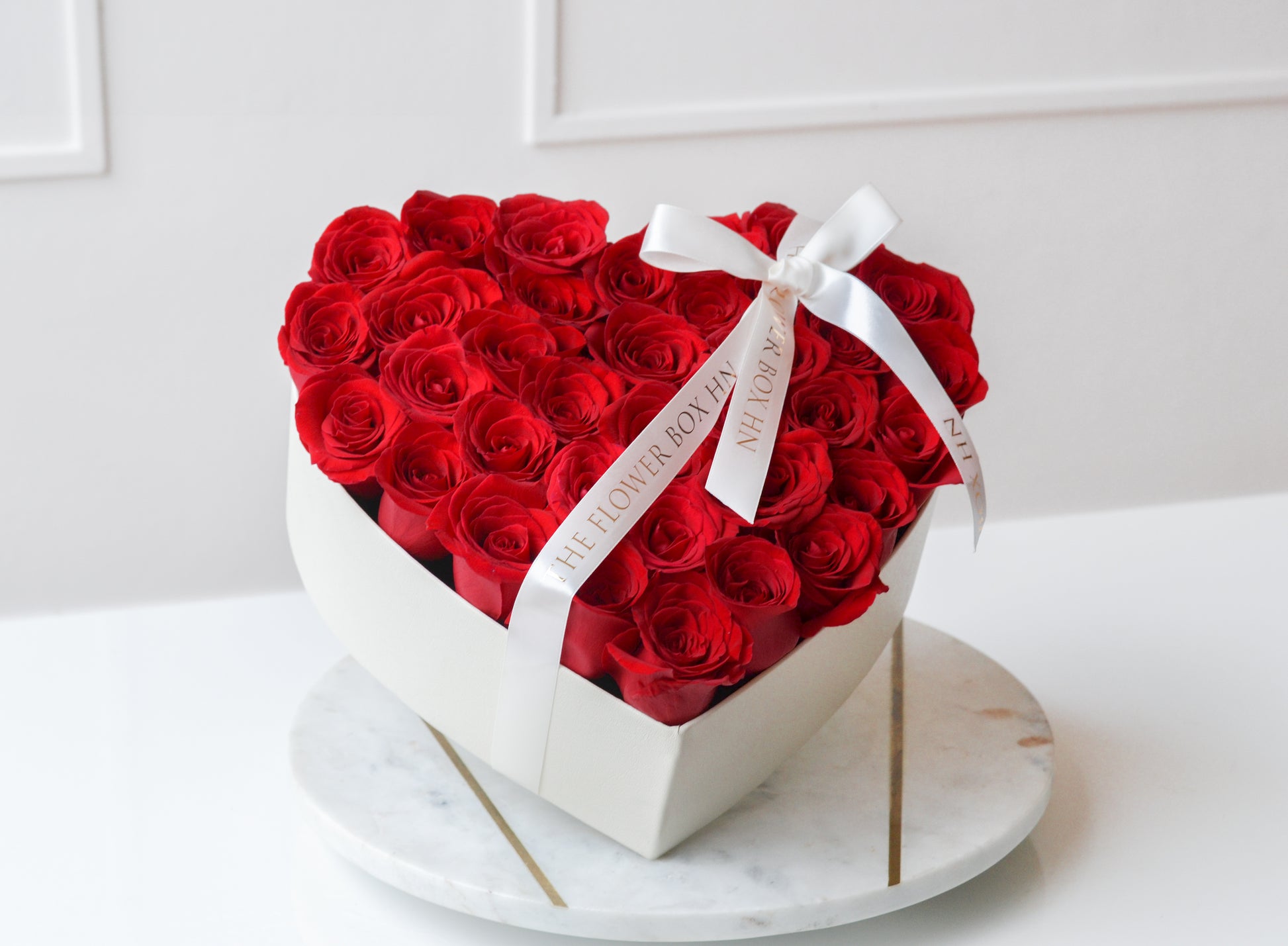Nuestra nueva caja de "With Love" contiene rosas frescas. Disponible en una sofisticada caja blanca en forma de corazón con nuestra cinta de The Flower Box. Perfecta para San Valentín ❤️